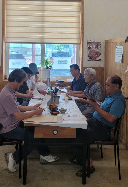 월송리 이장이 염소탕집 개업이라 임원들 몸보신