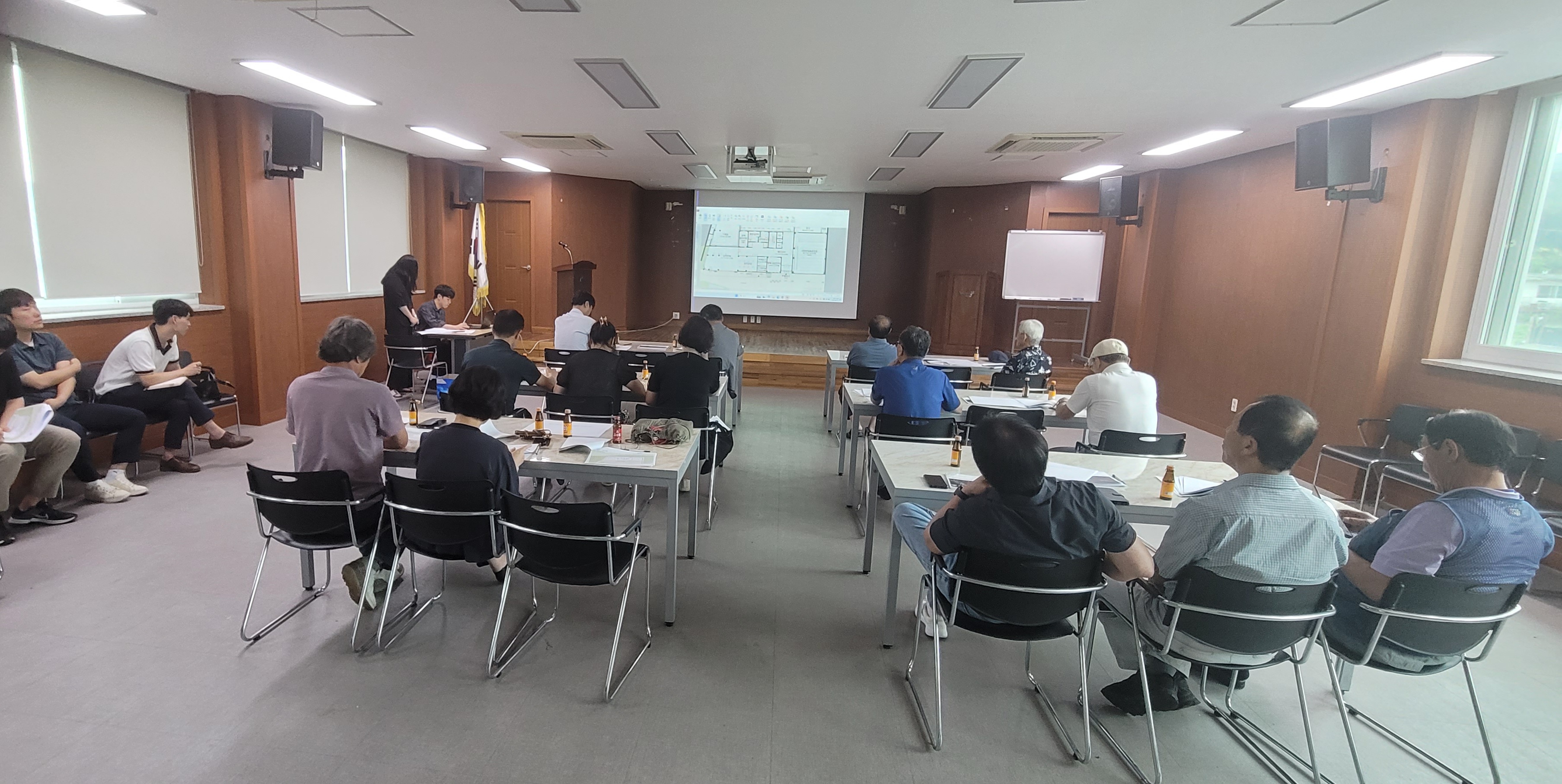 원건축사 사무소장 최종 설계 브리핑. 10월 쯤 착공 하겠다고.