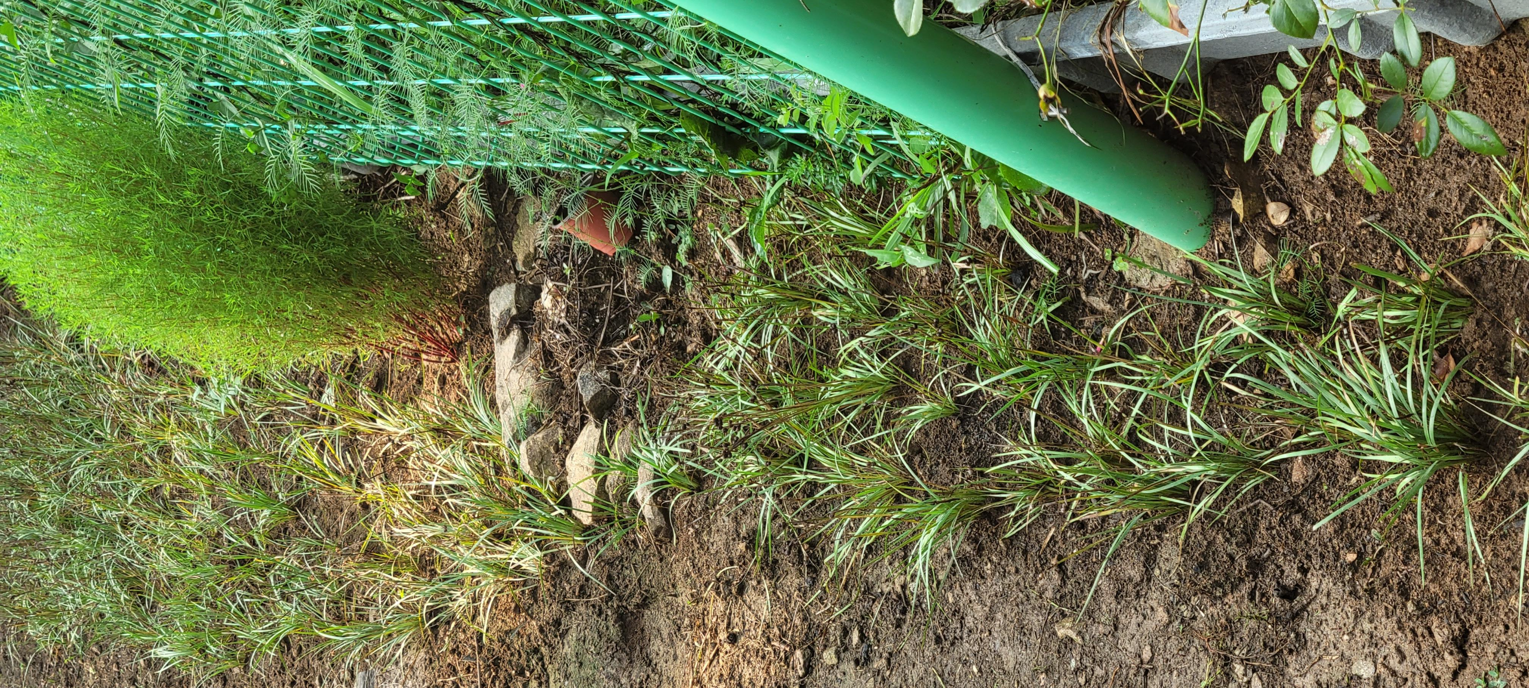 어머니가 잔디밭 여기 저기 퍼트린 <등심붓꽃> 뽑아다 휀스 주변 풀 잡으려고 심었다
