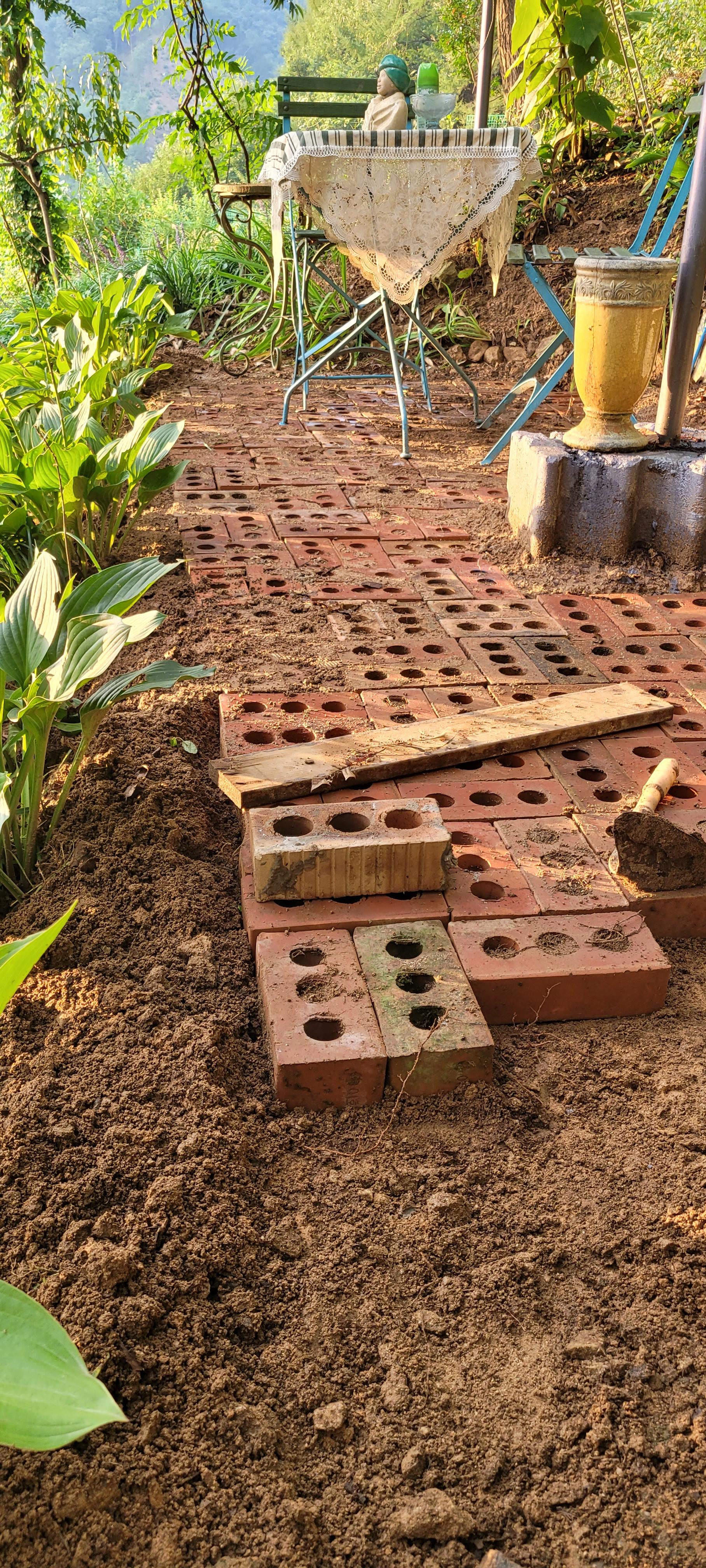 파고라 아래 벽돌을 깔았다.