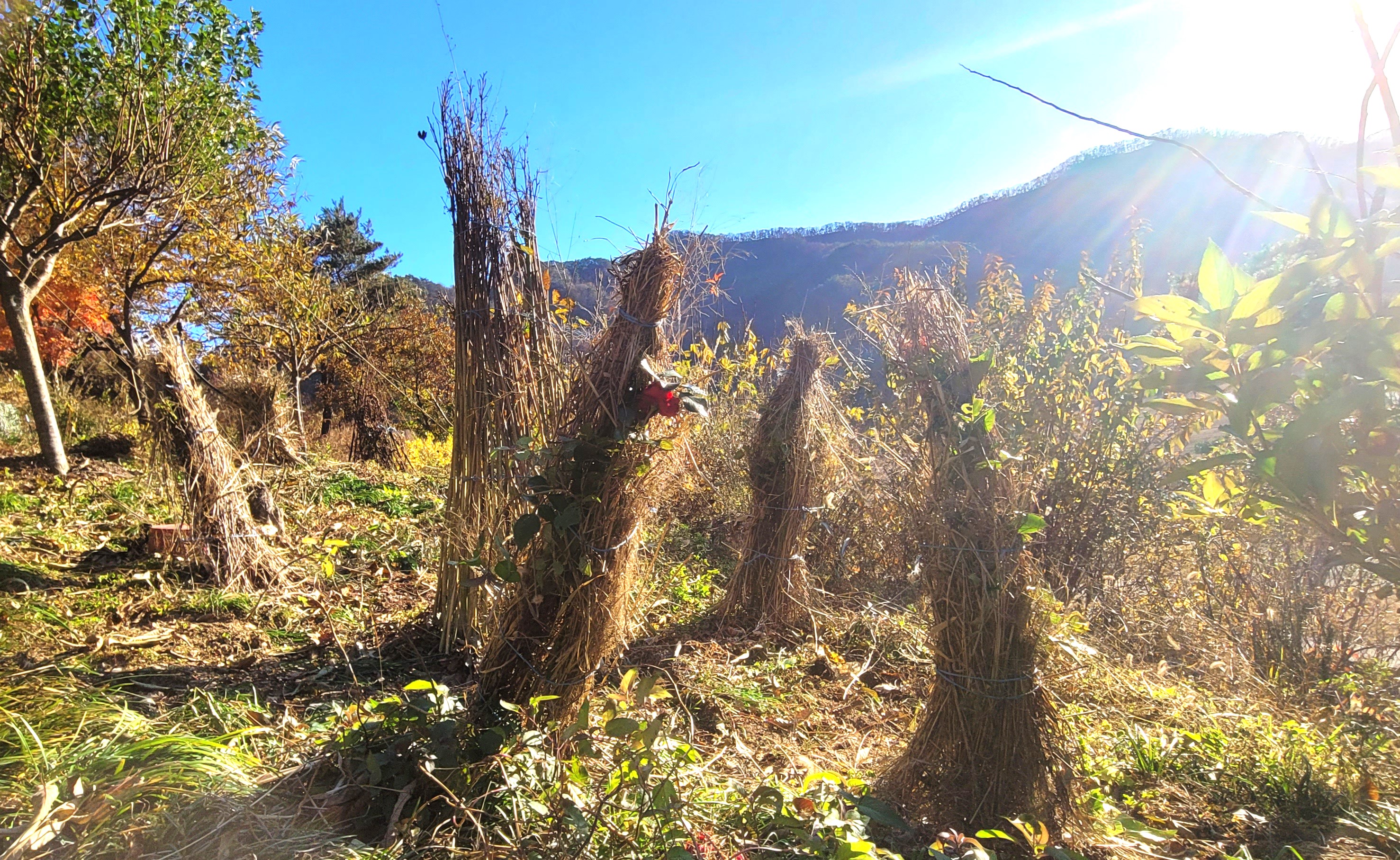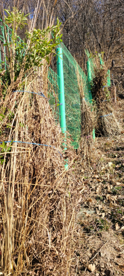 장미를 감싸 주었다. 판대리 2월 칼바람을 막아줄 식물용 패딩.
