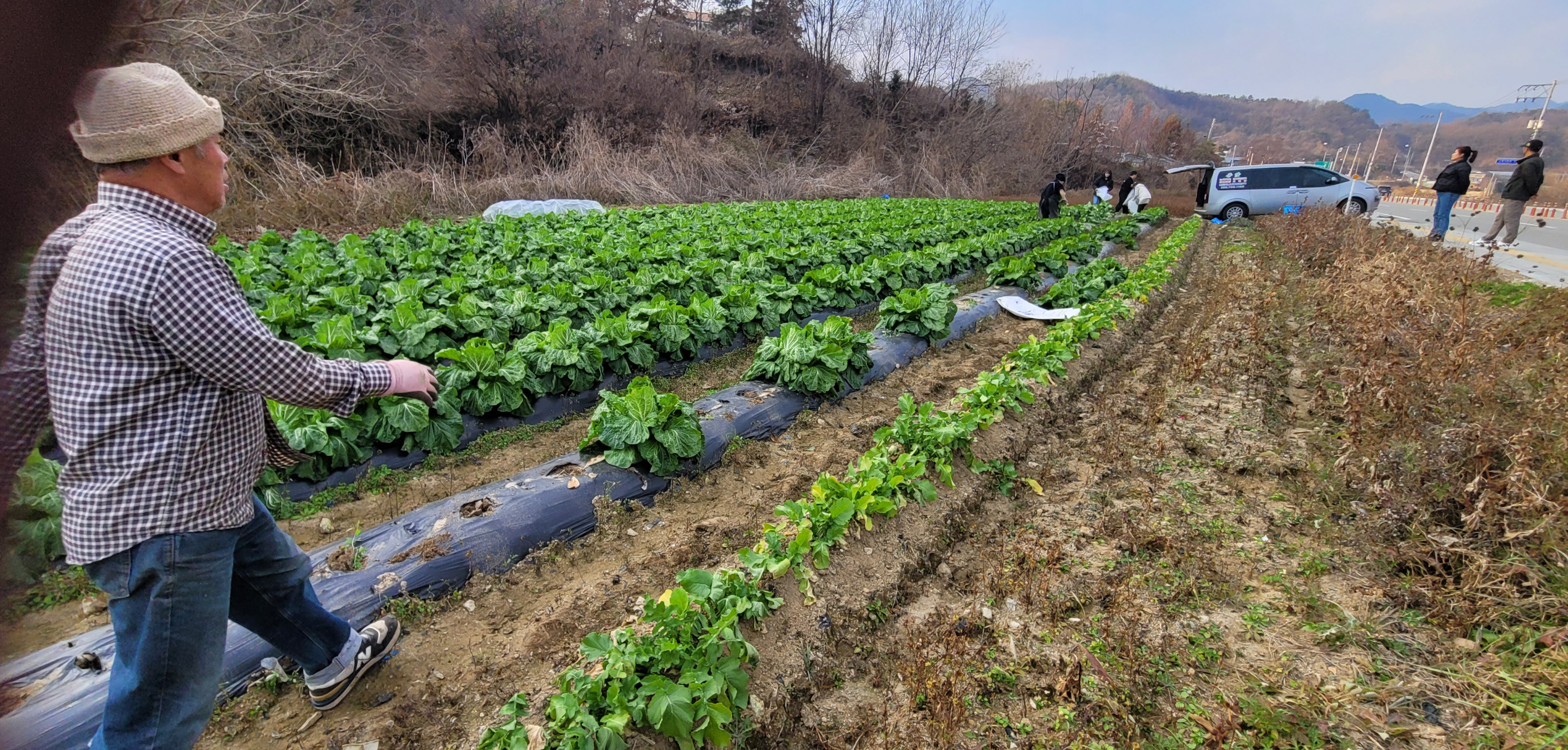 22 일. 속이 덜차 상품성이 없는 배추를 뽑아 왔는데 , 겉절이 해보니 고소하고 달다.