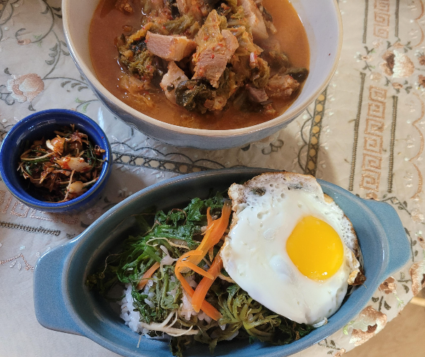 엄니가 냉이와 달래를 캐오셔서 동생이 맛있게 먹었다.