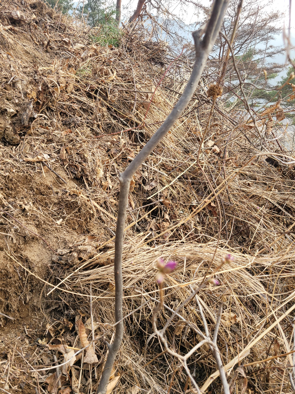 27일 진달래가 꽃봉오리 부풀렸는데 잡풀이 뒤엉켜서 엉망이다.